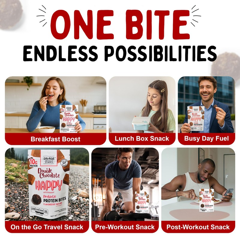 - One Bite, Endless Possibilities: Whether you're at home, at work, or on the move, savage snacks protein bites deliver clean, delicious nourishment in every bite. Perfect for all ages, they're a smart snack option the whole family can enjoy.
