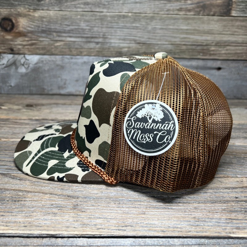 Savannah Moss Co INDIAN SKULL LEATHER PATCH COPPER ROPE SNAPBACK HAT
