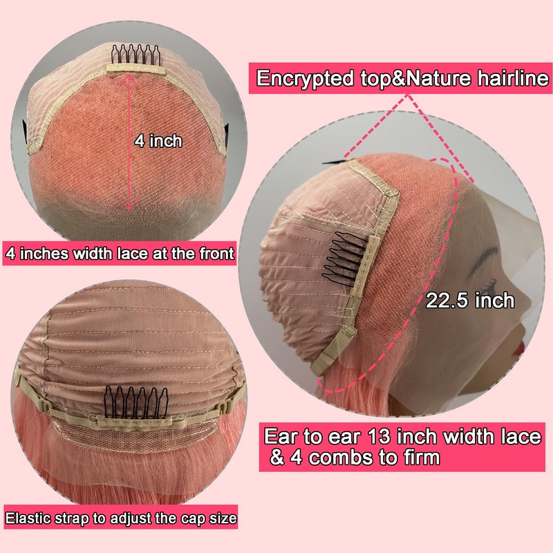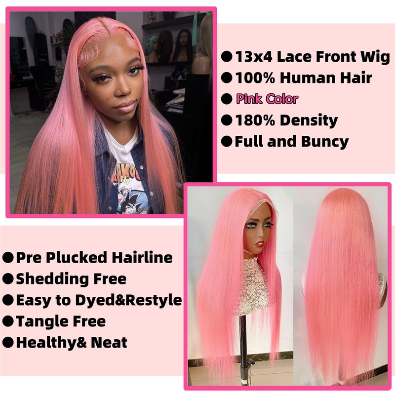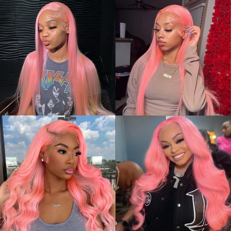 - 【Cap Size】13x4 hd transparent lace can perfectly melt with any skin tone, creating a perfect and natural look. Pink human hair wig is effortless to install and remove, making it convenient for daily wear.
