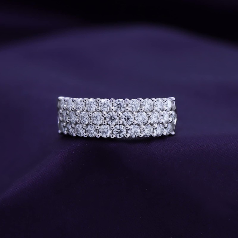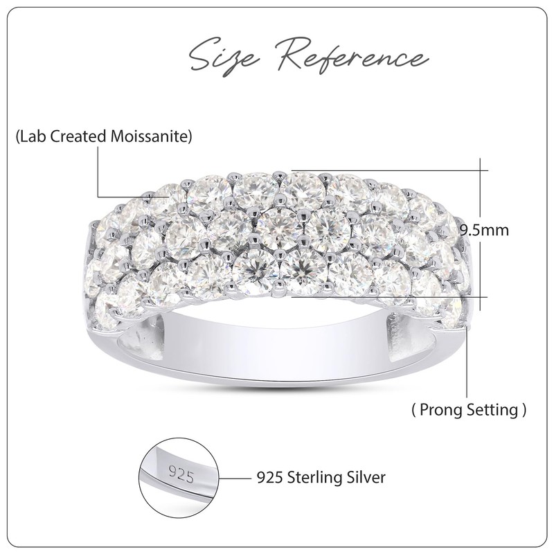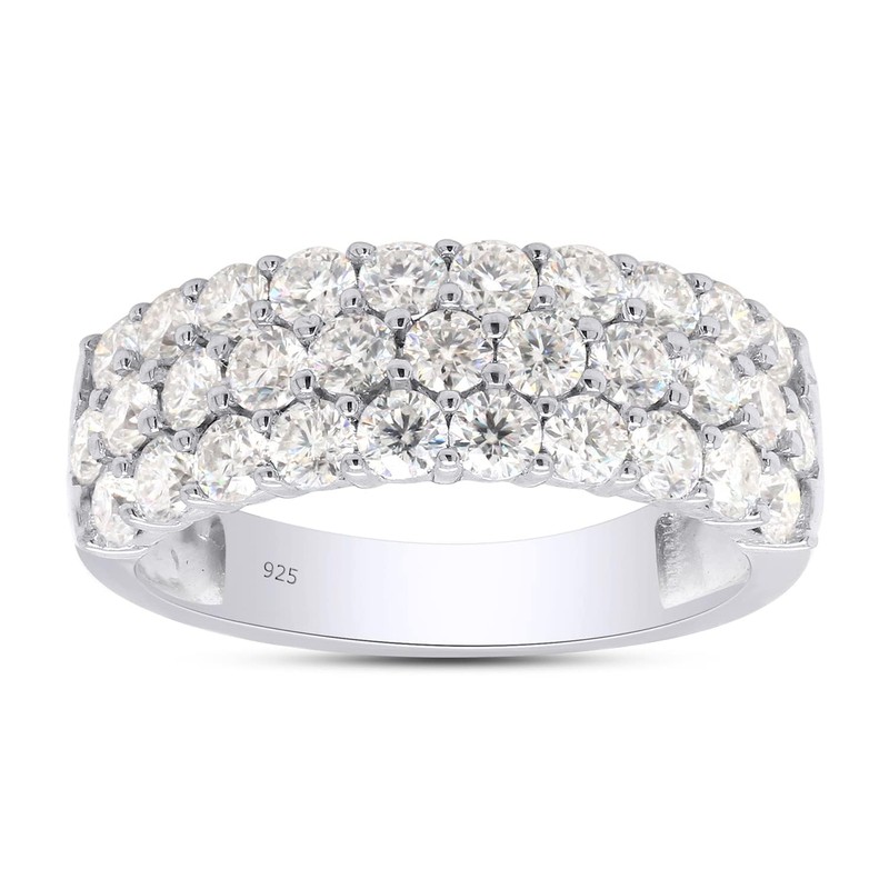 SAVEARTH DIAMONDS 1 1/2 Ctw Lab Created Moissanite 3-Row Half Eternity Anniversary Band Ring For Women In 14K White Gold Plated Sterling Silver (1.50 Cttw), Gift For Her Ring Size-7, Ring Size-7,