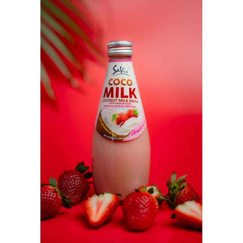 Savia - Coconut Milk Drink, Quality Coconut-Based Beverage, Made with Real Coconut Pulp & Natural, Delicious & Refreshing, Vegetarian, Gluten-Free(9.8oz, 12-Pack) (Strawberry)