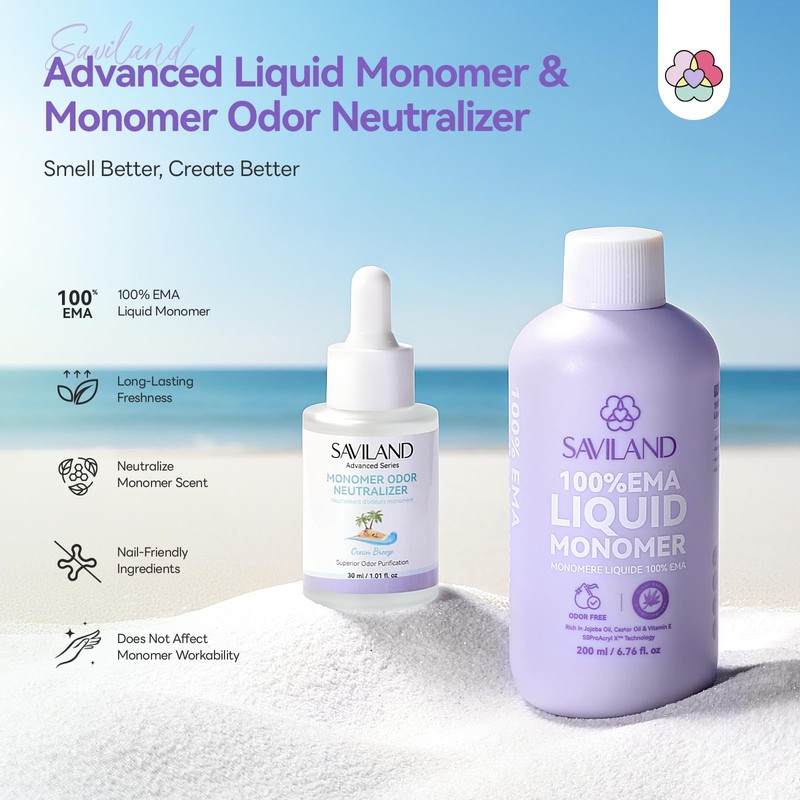 - High Monomer Performance: Transform your nails with SAVILAND salon-quality monomer bundle. Including a 200ml EMA Monomer and a 30ml Monomer Odor Neutralizer (Ocean Breeze), our acrylic liquid kit not only ensure maximum odor control without compromising the acrylic liquid's performance, adhesion, or curing properties