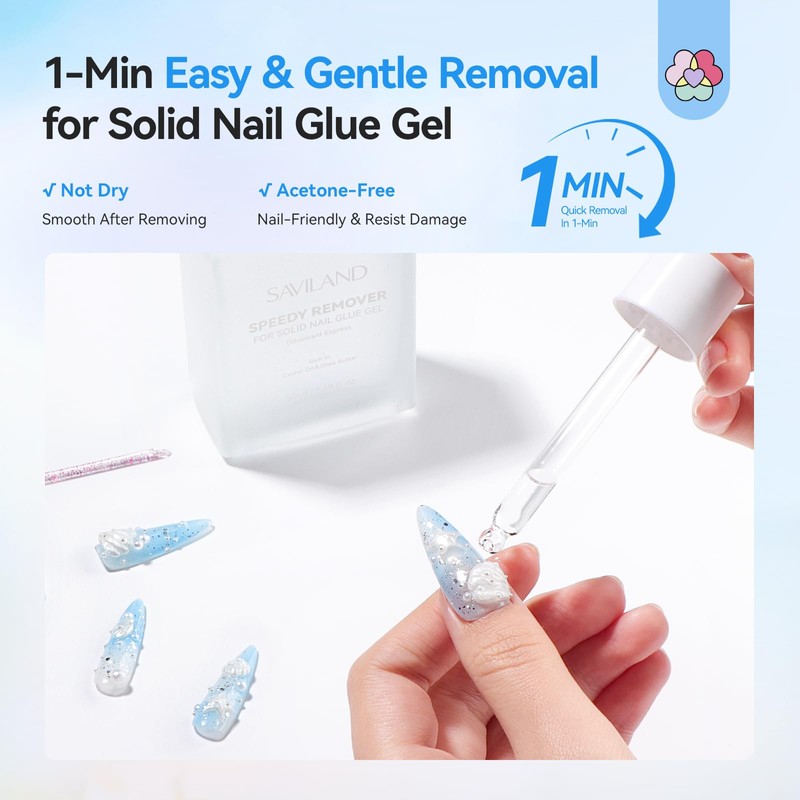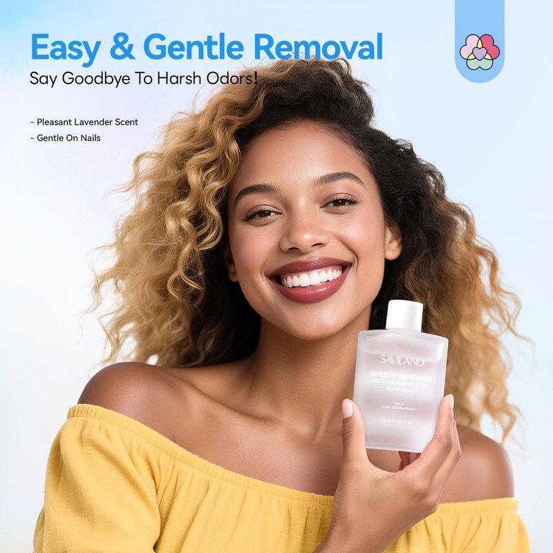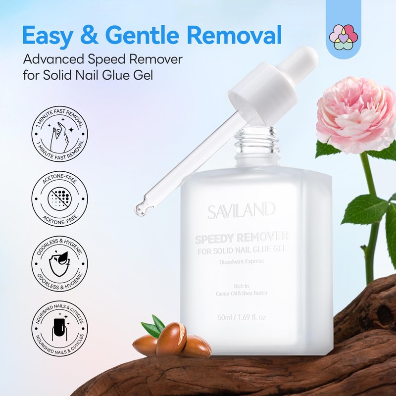 SAVILAND Advanced Nail Glue Remover: Gentle & Easy Solid Nail Glue Gel Remover for Press On Nails 50 ML with Castor Oil VE Gentle Non-Drying Odor-Free Non-Acetone Glue Remover Not for Gel Polish