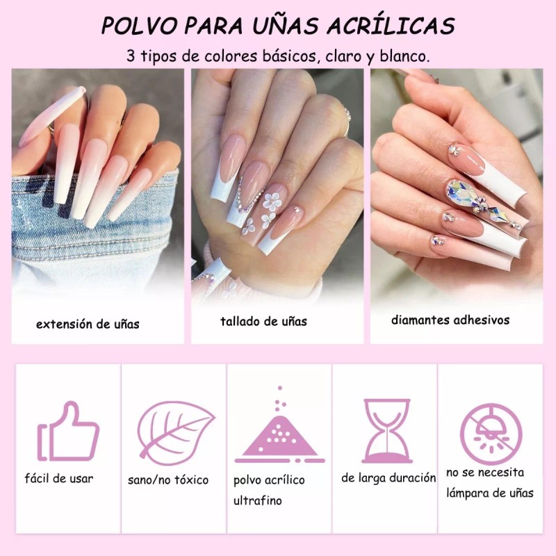 Utilizado para: extensión de uñas, aplicación de acrílico, diseño de uñas acrílicas, uñas acrílicas, eliminación de uñas acrílicas, uñas de gel U V o manicura y prepedicura.