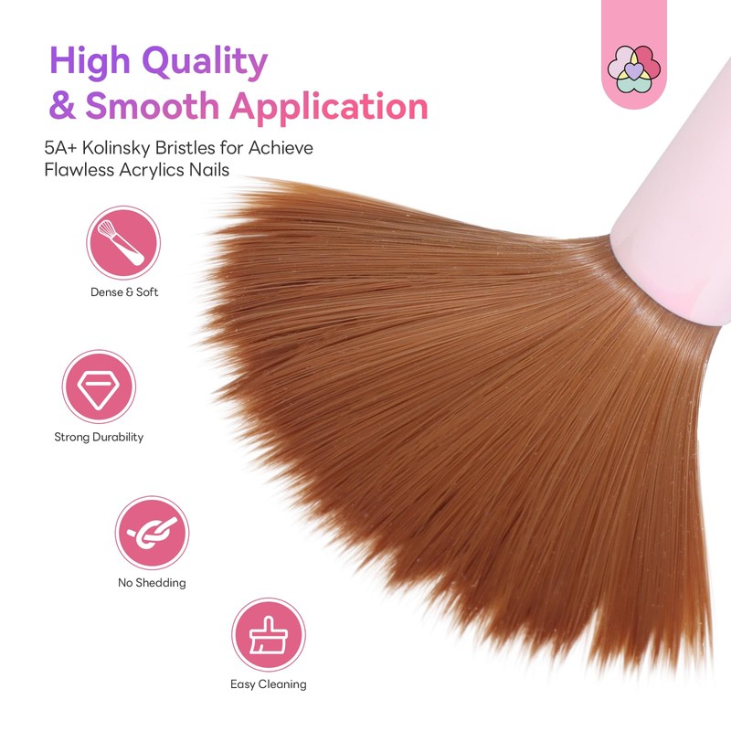 - High-quality & Smooth Acrylic Brushes: Made with 5A+ Kolinsky bristles, these brushes offer excellent powder pickup effect, smooth application, minimizing streaks, bubbles, and unevenness, resulting in a flawless acrylic nail surface. A reliable choice for both beginners