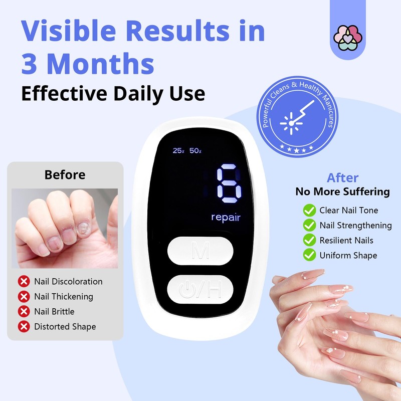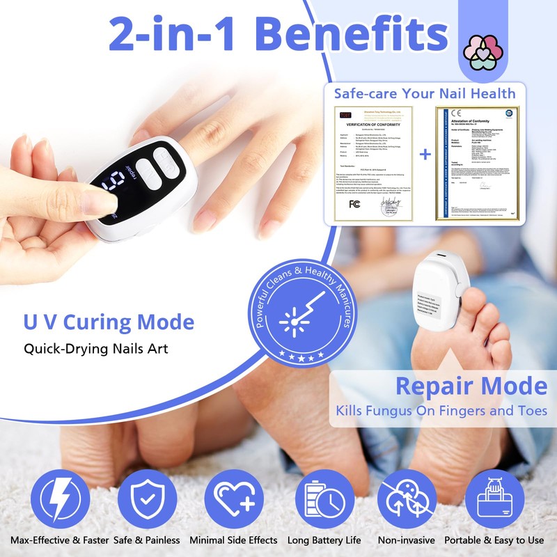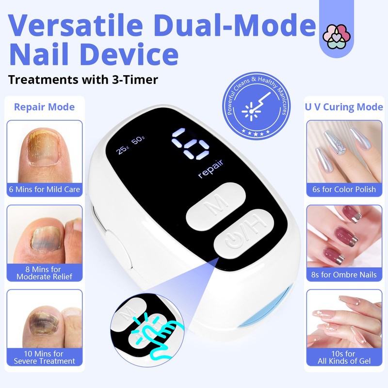 - Dual-Mode Operation for Your Every Need: A 2-in-1 device serves both as a nail fungus repair and a nail art U V curing system. Enjoy a fast, non-invasive, and painless procedure targeting toenail fungus for clean, healthy, and beautiful nails.