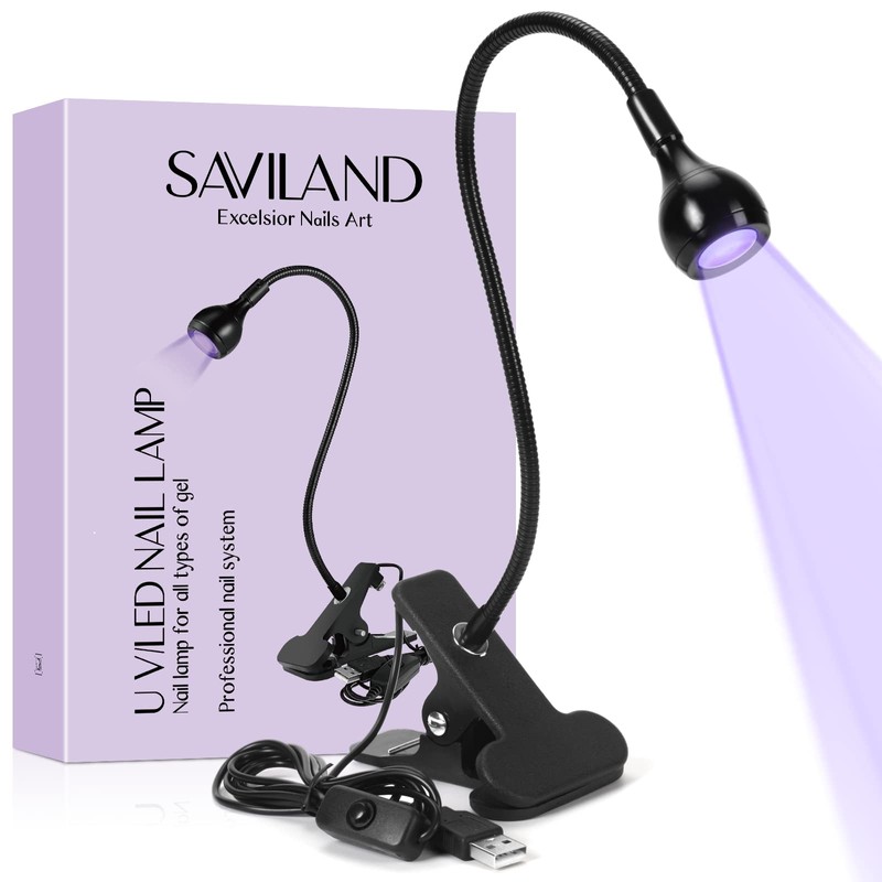 - Flexible Led Light for Nails: Saviland mini nail lamp has a flexible design and a sturdy clip. You have the flexibility to adjust the angle and height you need and don't have to worry about awkward angles since you can clamp it directly to your desk or wherever you find most convenient. Solve the difficulty of flash cure lamp, and adjust the use angle at will. The mini gel nail lamp is convenient to carry and travel. Perfect for any nail art design
