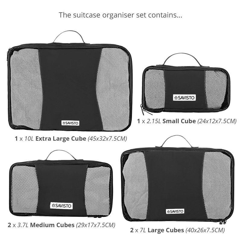 - 🌟 As featured on ITV's This Morning, Savisto's premium packing cubes revolutionise the way you pack. Experience hassle-free travel with our UK-designed packing cubes, the ultimate solution for organising suitcases, perfect for clothes, towels, toiletries, and electronics.