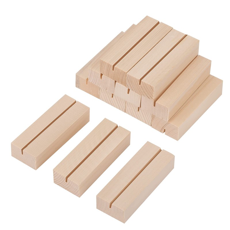 SAVITA 12 Pcs Wood Place Card Holders, Wooden Postcard Holder Acrylic Sign Stand for Party Decoration Location Small Table Menu Cards Holders Photo Display Stand