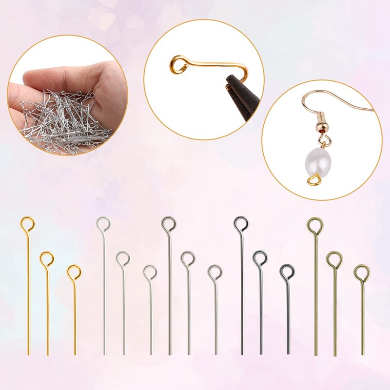 - Package contents: you will receive a total of 1500 pieces jewellery eye pins in 5 colours, including gold, white K, dark grey, silver and old cyan.Each colour has 300 pieces and 3 sizes, enough quantity for jewellery making.