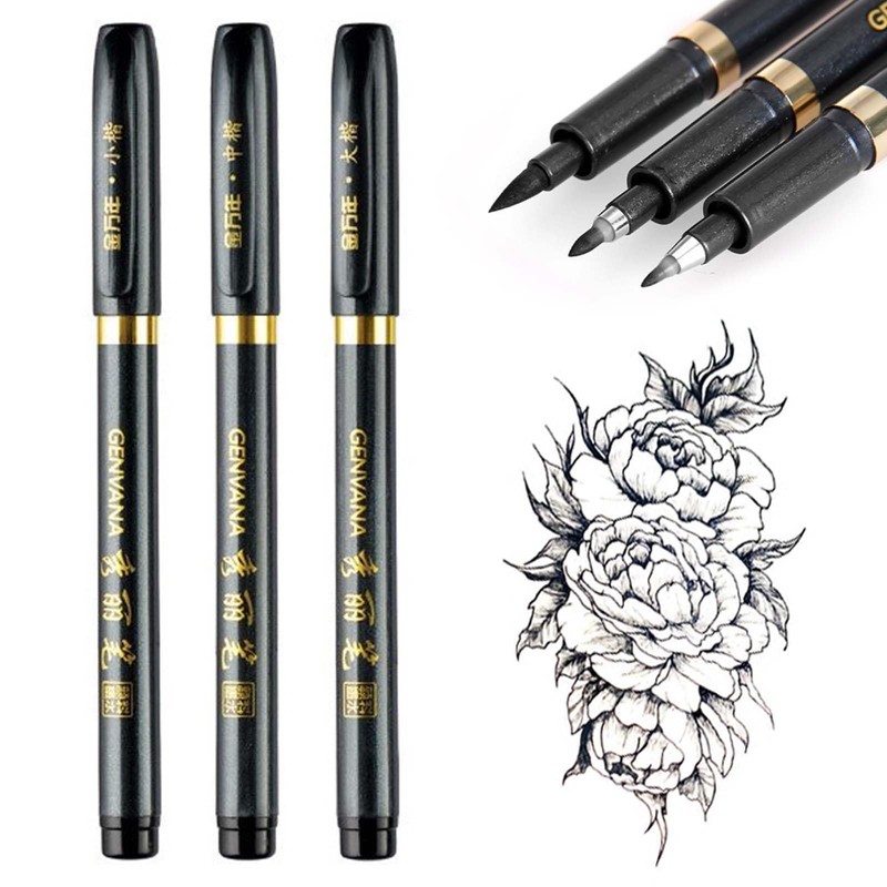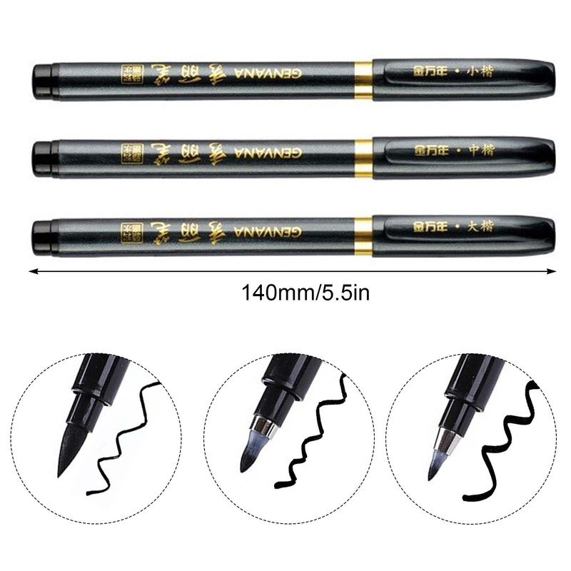 SAVOSWEET Pack of 3 Japanese Pens, Teechinese Japanese Calligraphy Shodo Brush Inks Pen Writing Drawing Skill