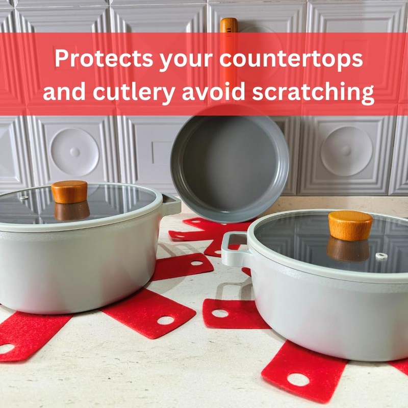 - PERFECT PROTECTION: It offers a perfect solution to prevent your kitchenware, which has the risk of sticking to pots, pans, glass ceramics, from getting scratched. Placing your products inside each other creates a good space in your kitchen. It extends the life of your products.