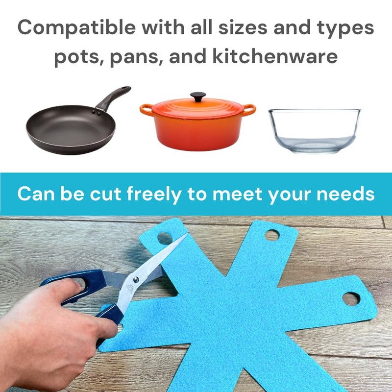 - PERFECT PROTECTION: It offers a perfect solution to prevent your kitchenware, which has the risk of sticking to pots, pans, glass ceramics, from getting scratched. Placing your products inside each other creates a good space in your kitchen. It extends the life of your products.