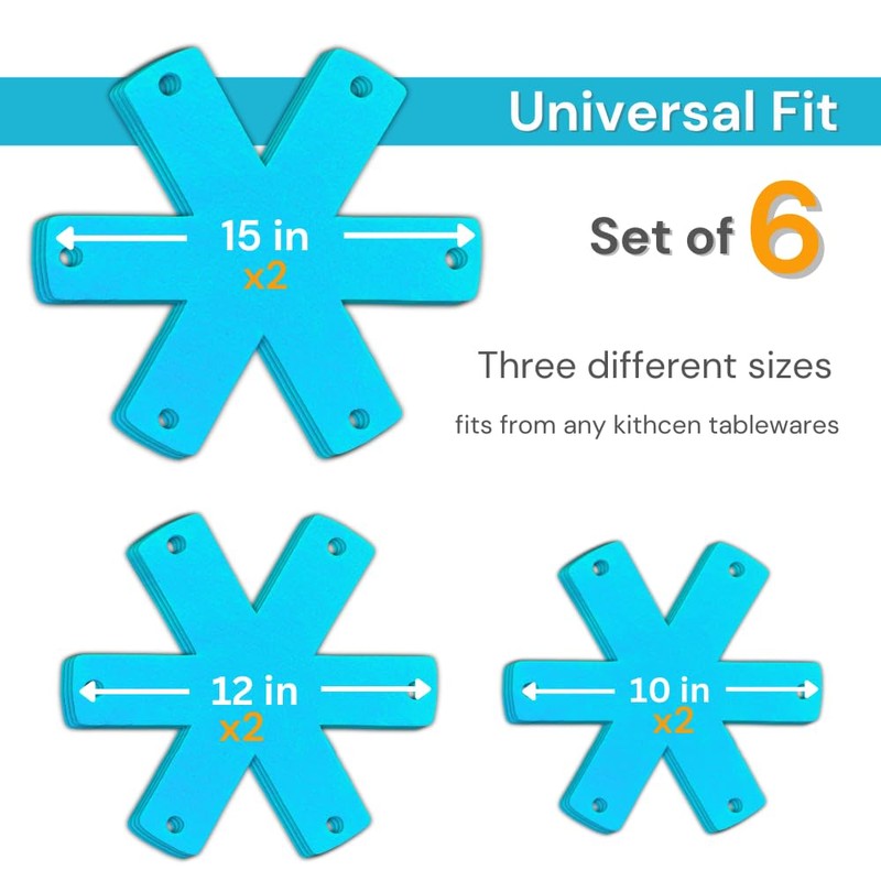 SAVUK Pot and Pan Protectors Set of 6 and 3 Different Sizes Separators Pad Pot Dividers Anti-Slip Pad for Stacking and Protecting Cookware Avoid Scratching (10" 12.5" 15") (Turquoise)