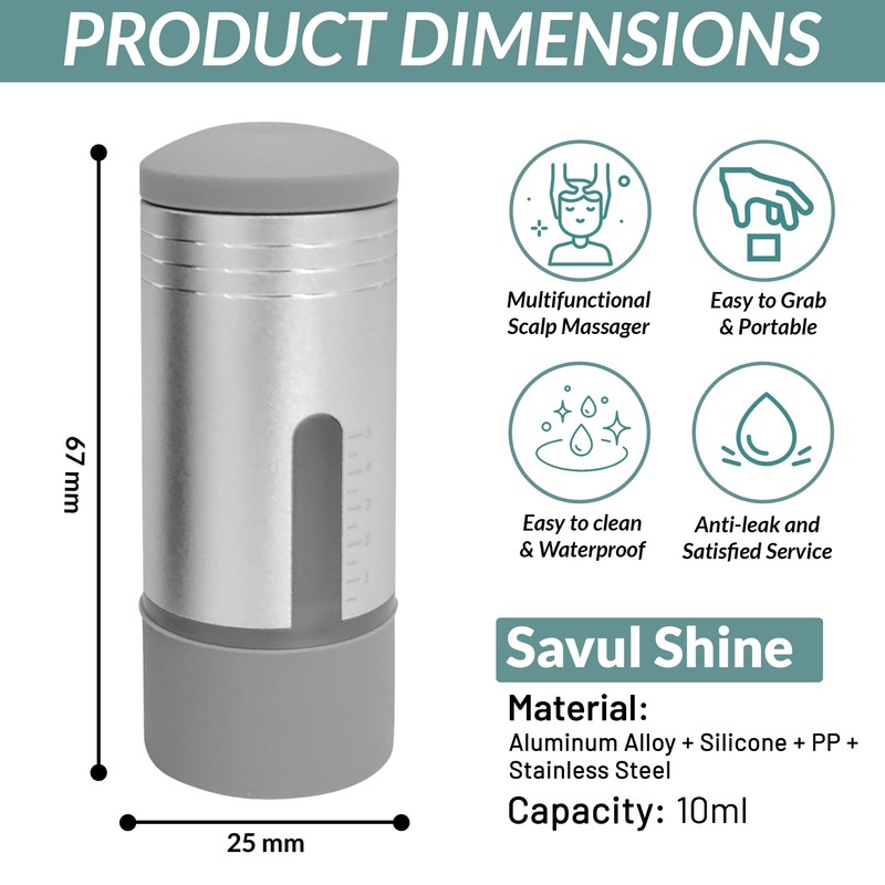 - COMPACT AND TRAVEL-FRIENDLY: With its 25X25X67 mm size and 10 ml fluid capacity, our scalp oil applicator is the perfect travel companion, offering nourishment wherever you go.