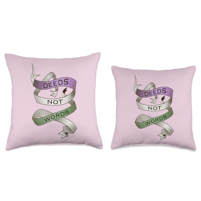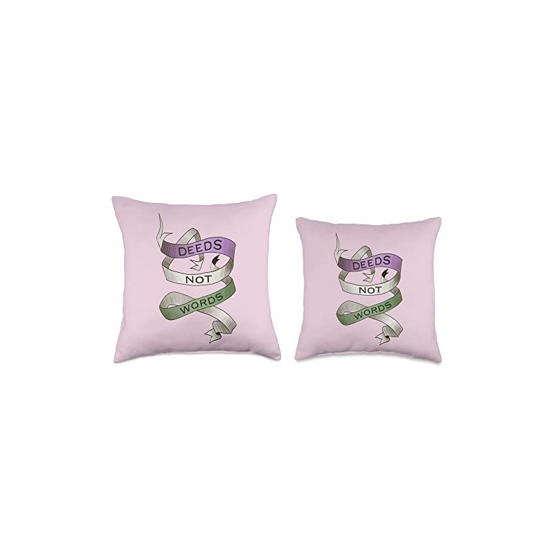 Savvy Deeds Not Words, Suffragette Women's Rights Slogan Throw Pillow, 16x16, Multicolor