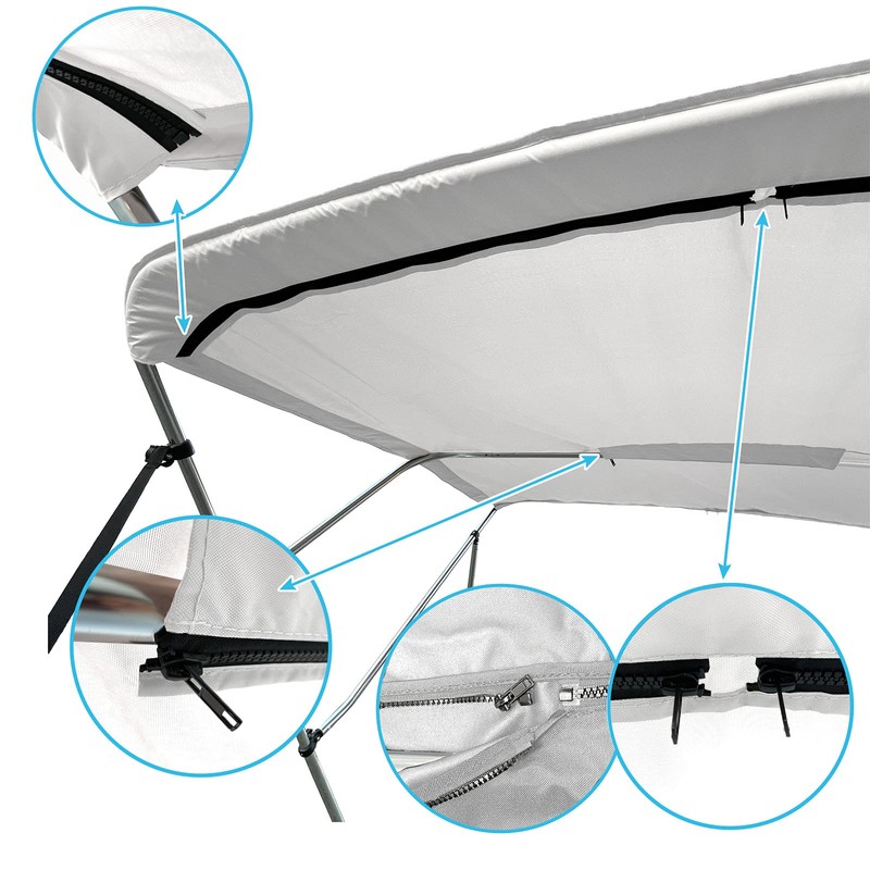 • QUICK AND EASY INSTALL: Zippered pockets make it easy to replace bimini top canvas; Heavy duty zipper allow you to quickly install boat canopy top fabric; No need to dismantle the bimini frame