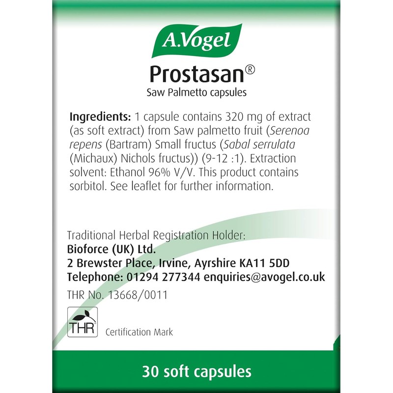 - CONVENIENT FORM: A.Vogel Prostasan Saw Palmetto capsules is in a convenient one-a-day capsule form. Based on traditional use only.