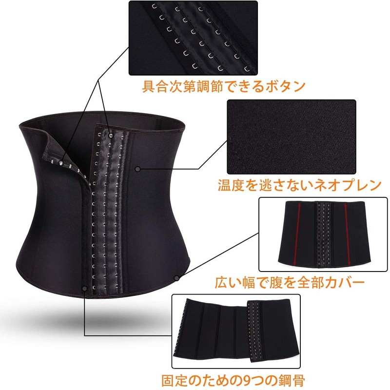 - It has 9 spiral steel and has 3 adjustable hooks on the front side, so you can adjust the waist to your preference