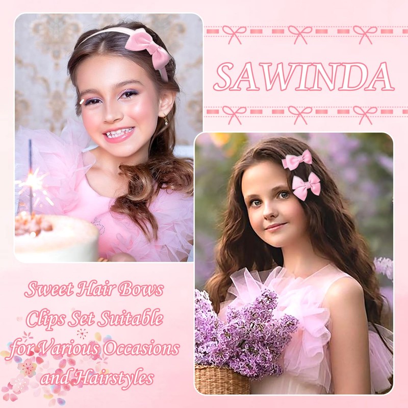 SAWINDA 20Pcs Pink School Hair Accessories Set for Girls Uniform Bow Headbands Hair Ties Grosgrain Ribbon Bows for Hair Snap Hair Clips Bow Hair Accessories for Toddler Little Girls