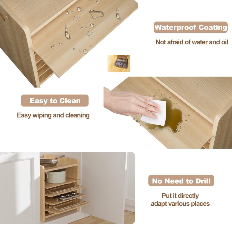 - User-Friendly Design: The baking sheet organizer has a simple storage structure, with slots left in the overall frame for easy pulling of the wooden board. You only need to install a few screws, it's also easy for beginners.