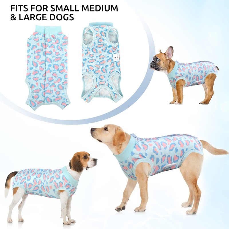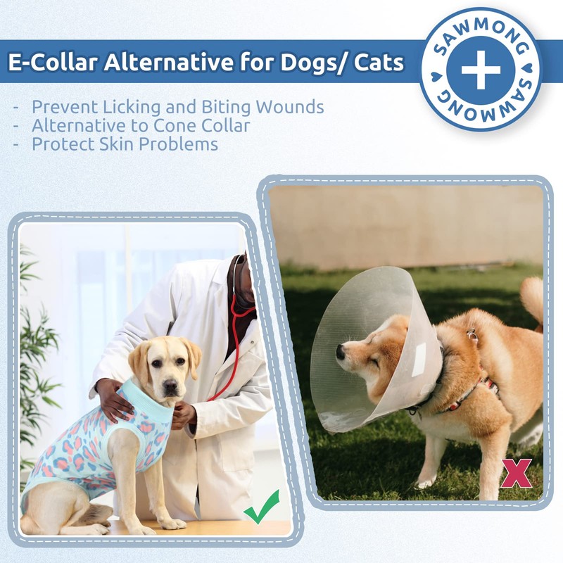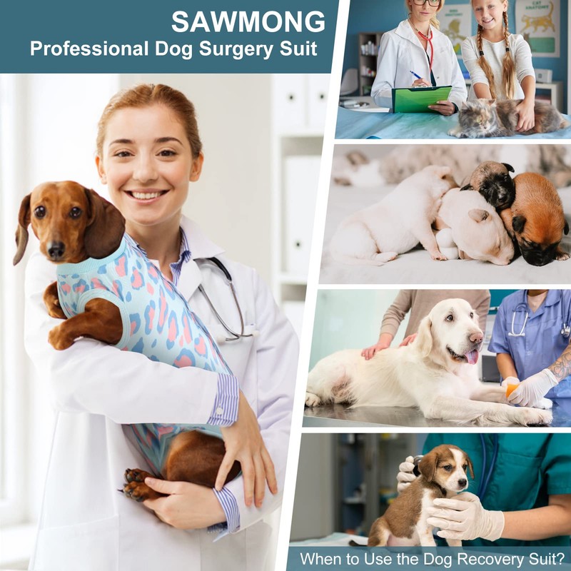 - Stylish Leopard Print: The SAWMONG dog surgical recovery suit for female and male dogs/cats, works well for small, medium, and large dogs. Our package includes 1 pieces of leopard print dog recovery suit. Sufficient quantity definitely is taken into consideration. Wear this dog onesie makes your pet looks beautiful and lovely. but also can be used as a shirt to protect your furniture from fur and urine.