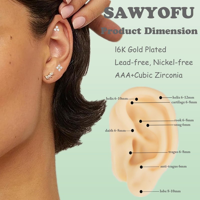 • Versatile Usage:The stud hoops earring sets are simple and practical, suitable for multiple piercings. They can be worn as cartilage earrings, conch hoop earrings, daith jewelry, helix earrings, rook hoop earrings, and tragus hoop piercings.