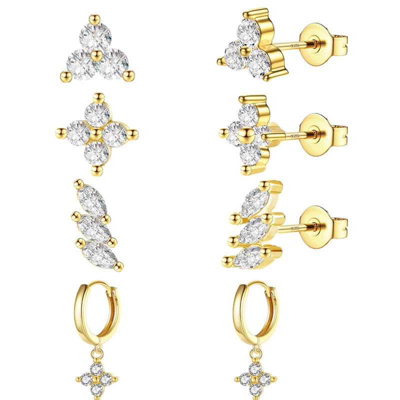sawyofu Gold Stud Hoop Earrings Sets For Women 4 Pairs Hypoallergenic Gold Plated Small Huggie Dangle Earring Stack Cartilage Cz Jewellery For Multiple Piercing