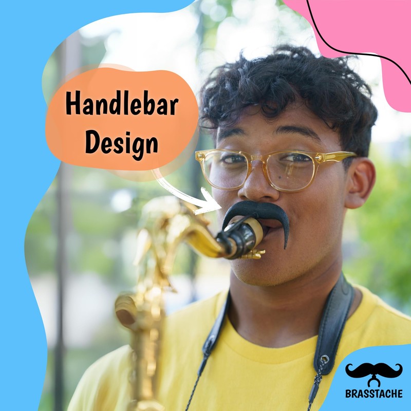 Sax-stache 2.0 by Brasstache - Clip-on Mustache for Saxophone Players, Handlebar version (Tenor or Bari Saxophone)
