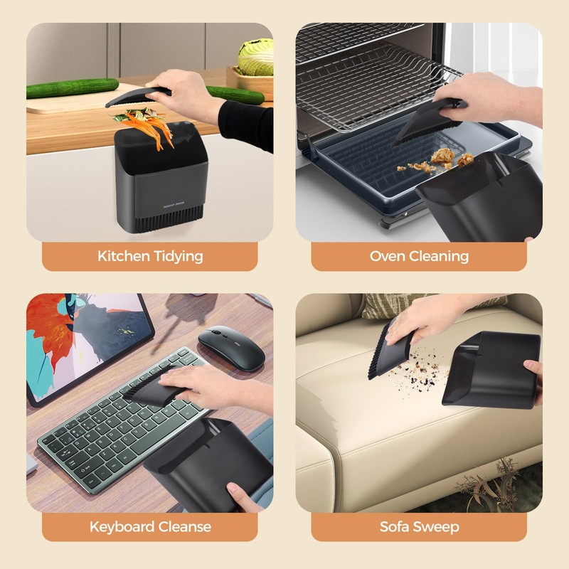 - 【Multipurpose Cleaning Kit】Small broom with dustpan combo set – a compact yet powerful cleaning duo that serves multiple purposes. Perfect for kitchen countertops, sofas, bed surfaces, desktops, drawers, car seats, and even tight spaces like ovens, this mini broom and dustpan set is designed to tackle all your cleaning needs.
