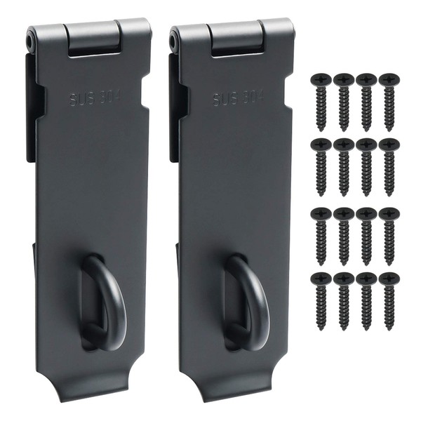 Sayayo Door Hasp Latch Lock 5 Inch Padlock Hasp Clasp Door Lock Latch Pocket Door Lock for Barn Door, Cabinet, Drawer, Stainless Steel Matte Black, 2 PCS, CMS9B-5-2P