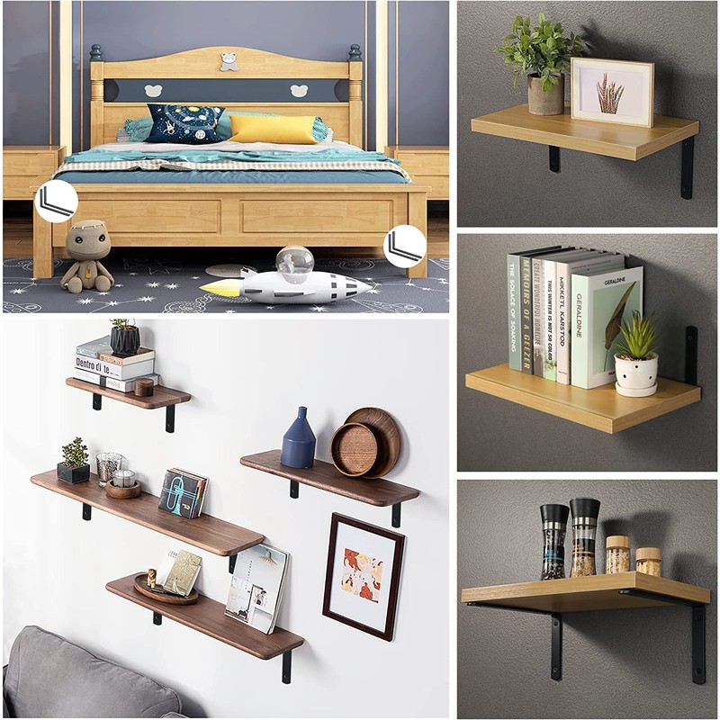 - APPLICATION - These black floating shelves brackets designed for any shelf install, such as bookshelf, exhibition stand, garden shelf, table and chair corner, external wall brackets etc. It can play a good role regardless its small size, and make your home or garden more beautiful.