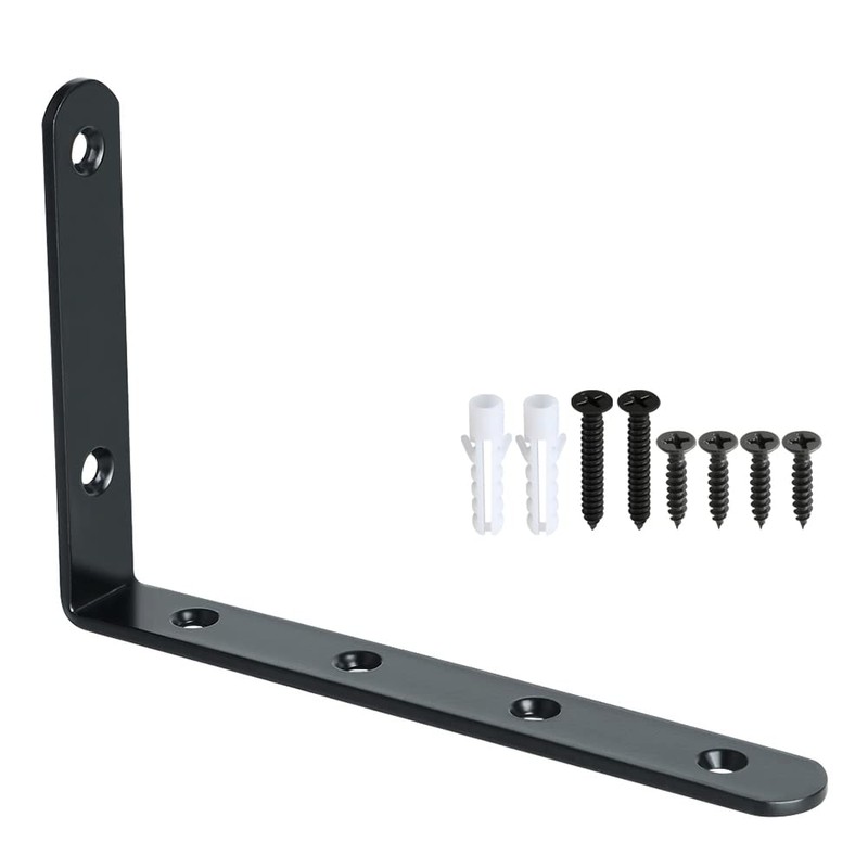 - HIGH QUALITY - The L shaped shelf brackets are made of high quality stainless steel, anti-rust and not bending, ensuring quality and longevity in wet weather. Matte Black surface, comfortable touch feelings. Not easy to scratch, look bright as new after long time use.