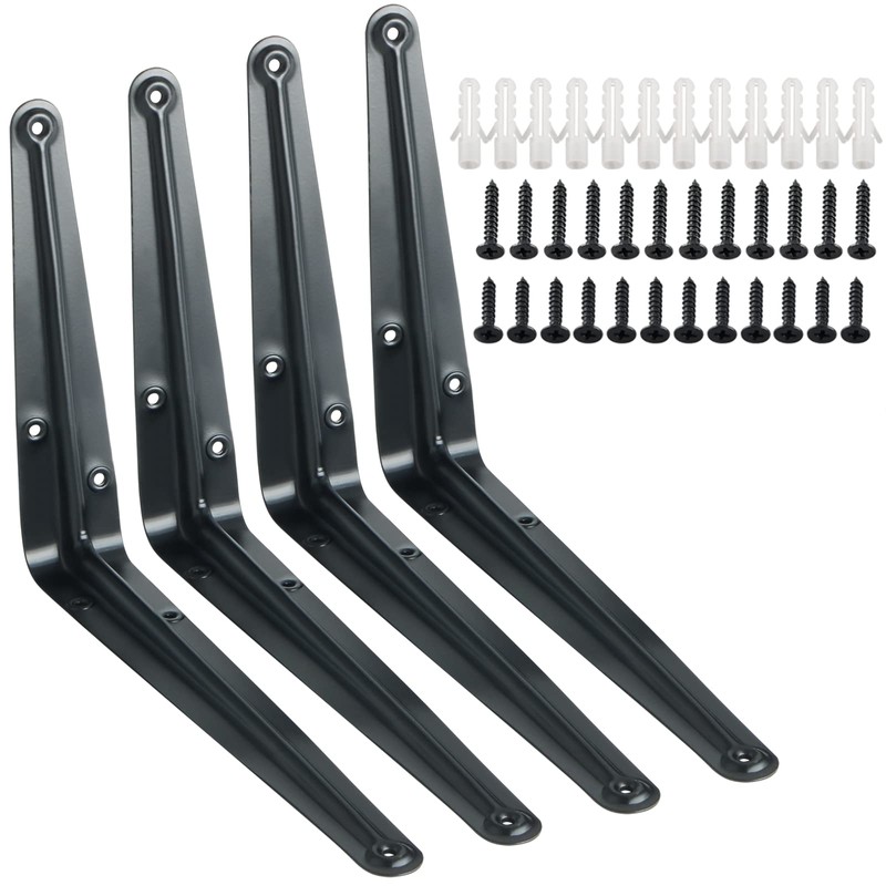 Sayayo London Style Shelf Bracket, Shelf Support Corner Brace Angle Bracket Wall Hanging 10-inch, Matte Black Finished, 4 Pcs, EJB3010B-4P