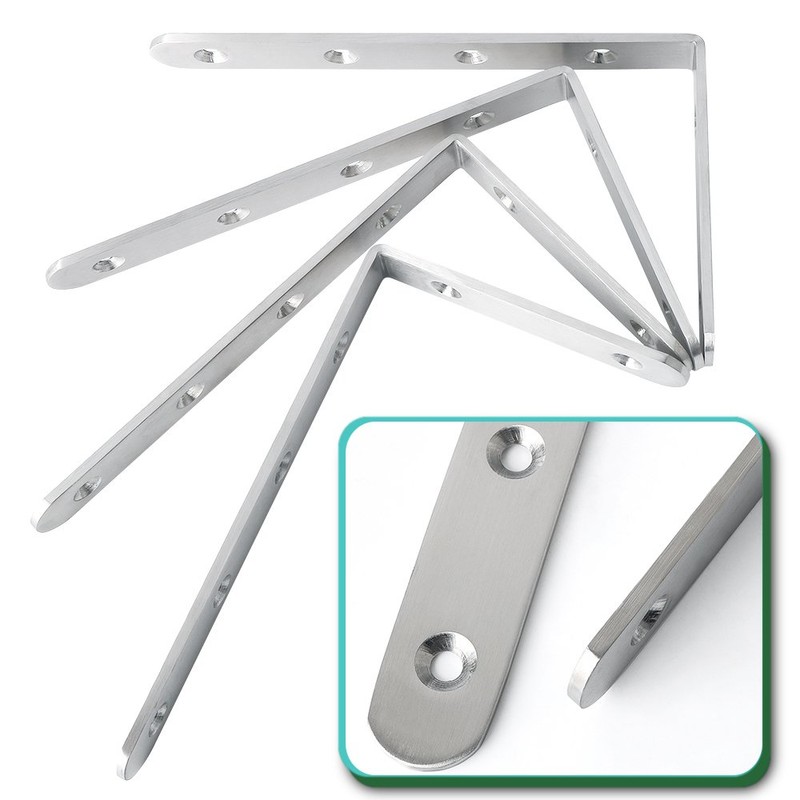Sayayo Shelf Bracket Corner Brace Angle Bracket Shelf Support Wall Hanging 150mm*100mm, Stainless Steel Brushed Finished, 4 Pcs, EJ6207-4P