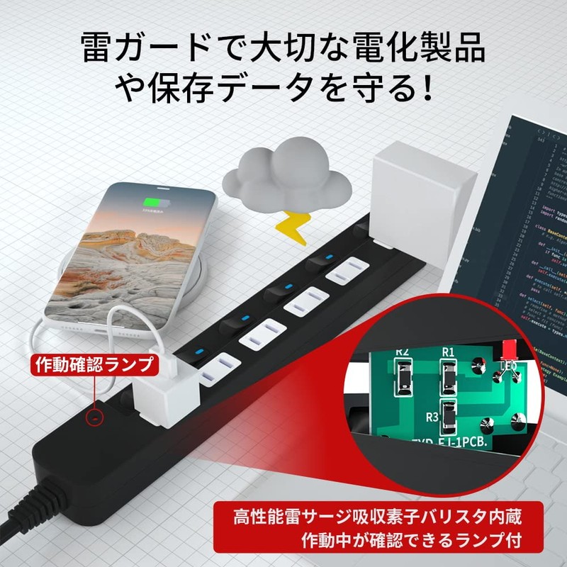 - Built-in lightning guard and lamp included for operation confirmation: Damage of lightning strikes may damage connected devices and stored data. We have equipped a lightning guard with a surge voltage of up to 6,000 V