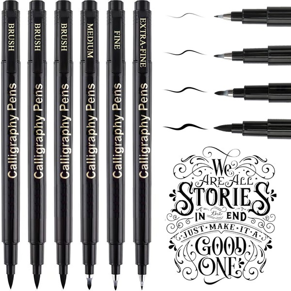 - 4 DIFFERENT SIZE: The hand lettering pens have 4 different sizes of nibs, ultra fine, fine, medium and brush to suit your different needs. There are 6 pens in the calligraphy set, 1 ultra fine, 1 fine, 1 medium and 3 brushes. Ideal for advanced hand lettering, calligraphy, art drawings.
