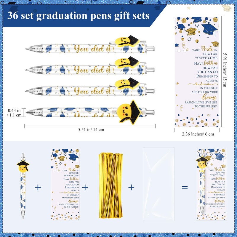- Elegant Graduation Cap Design: these graduation party favors are decorated with elegant graduation cap crafts and cute smiling faces; There are 36 sets in total, and they come with 36 cards, 36 gold ties and 36 clear self adhesive bags; The quantity is sufficient and the style is novel to meet your graduation gift needs