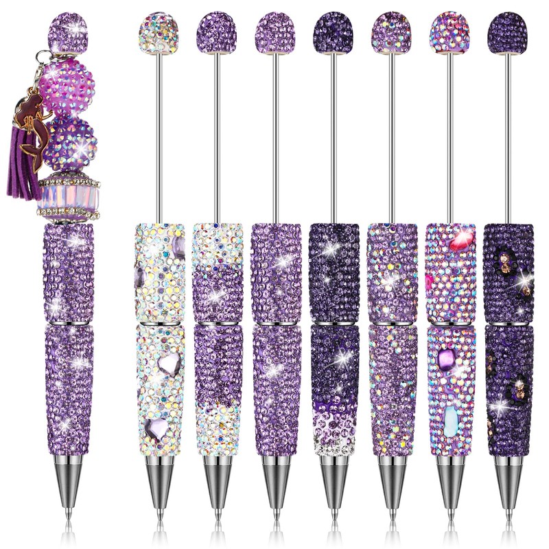 Sayglossy 7 Pcs Glitter Beadable Pens Full Rhinestone Fancy Ballpoint Pens Assorted for Beads DIY Diamond Beaded Pen Kit Cute Journalling Ballpoint Fun Bling for DIY Craft Making (Purple)