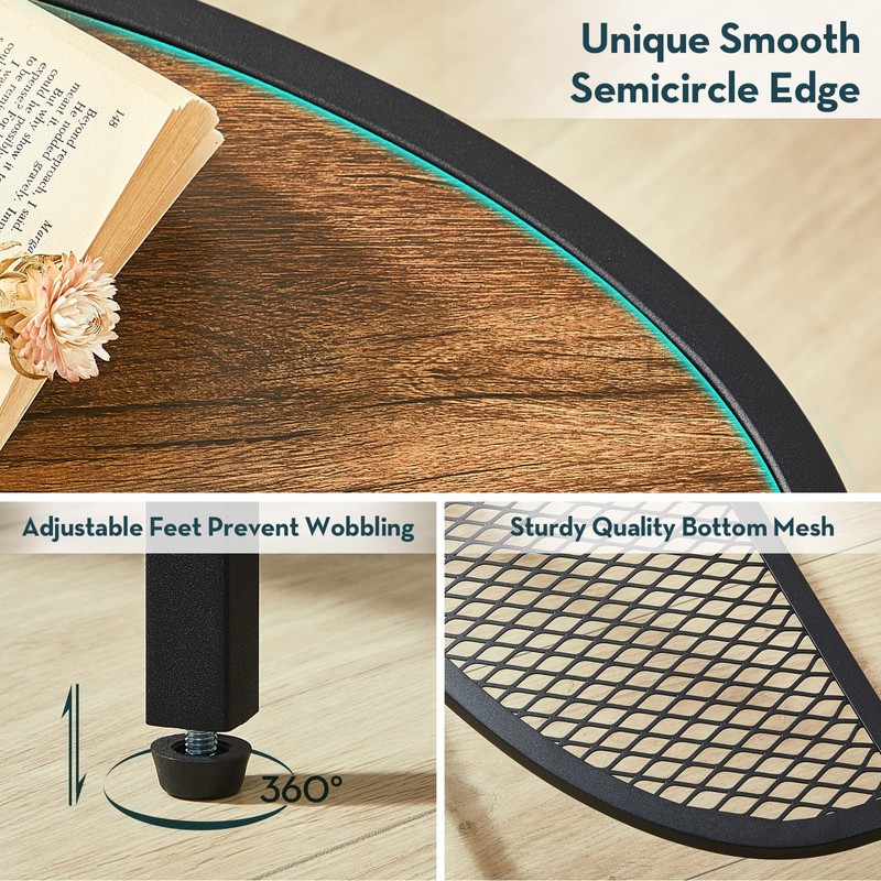 • 【Unique Semicircle Look:】Simple and Elegant semicircle look matches with your modern home style, suitable for small and large spaces. Smooth round edge is much safer than sharp square corners. 2 tier design with industrial vintage style wood top panel and mesh shelves provides spacious storage space, making your space cleaner and tidier.