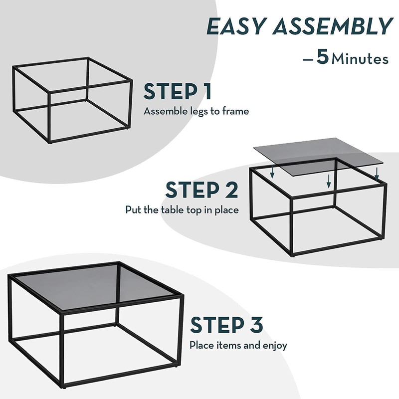 SAYGOER Glass Coffee Table, Small Modern Coffee Table Square Simple Center Tables for Living Room 26.7 x 26.7 x 17.7 Inches, Gray Black