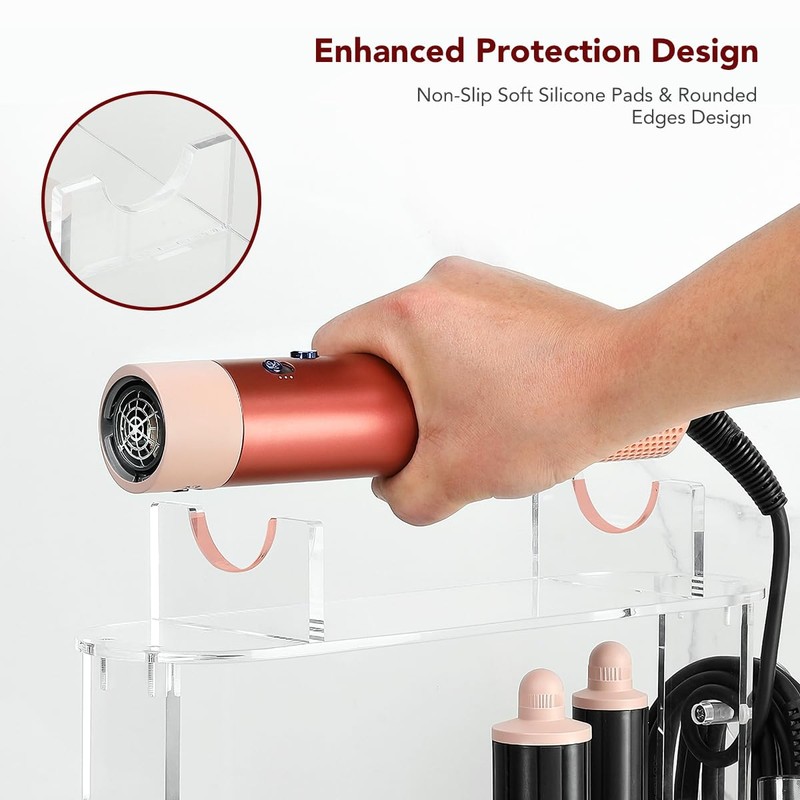 - Built-In Protection for Your Device C A soft silicone pad cushions your Airwrap Styler, preventing slips, scratches, or damage. Unlike other stands, ours is designed with smooth, rounded edges to protect your device from wear and tear while enhancing overall stability during placement and removal.