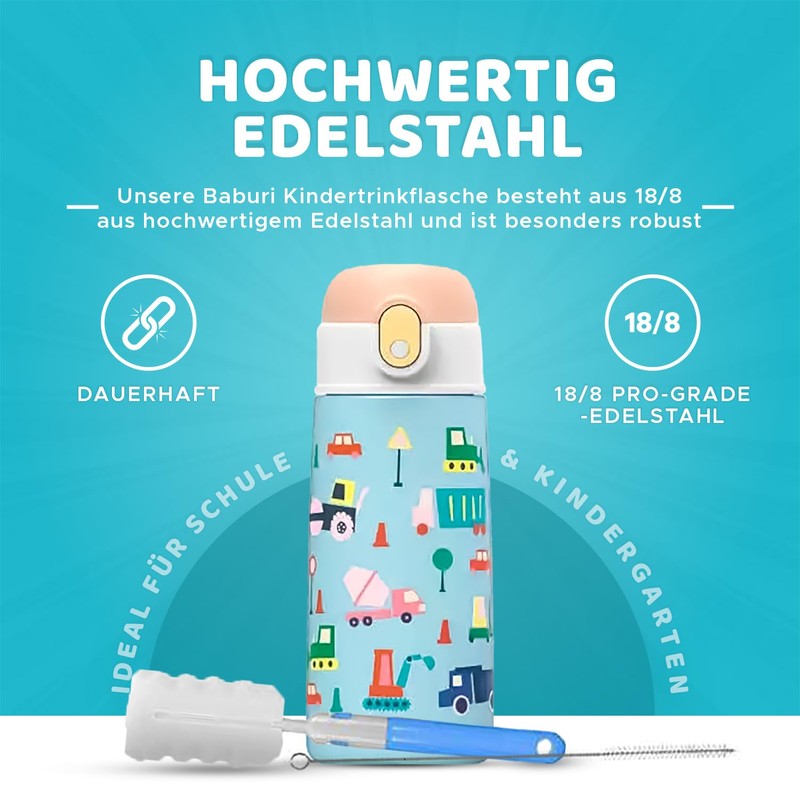 - High-quality stainless steel: Our SB Baburi children's drinking bottle is made of 18/8 pro-grade stainless steel and is particularly robust. It offers you a durable and safe solution for your little one's daily use, ideal for school and kindergarten.