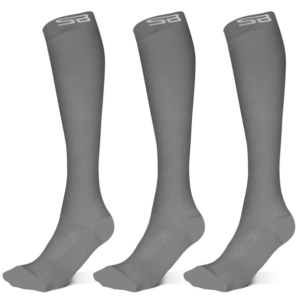 SB SOX 3-Pair Compression Socks (15-20mmHg) for Men & Women – Best Socks for All Day Wear! (XXL, 03 – Solid Gray)