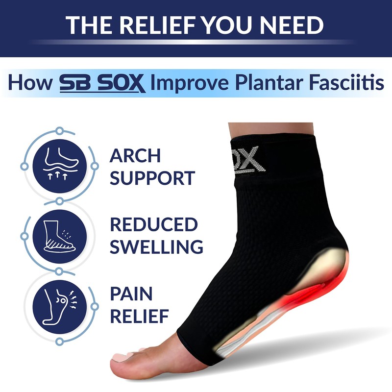 Say goodbye to sore feet and hello to all-day comfort. Whether you're standing for long hours, training hard, or simply staying active, SB SOX Plantar Fasciitis Relief Socks deliver targeted support where you need it most. These ankle compression sleeves apply gentle, consistent pressure to the arch, foot, and ankleideal for managing plantar fasciitis, Achilles tendonitis, swelling, and heel spurs. Made with breathable, lightweight fabric, they're comfortable enough to wear all day or nightunder socks, with shoes, while sleeping, or during recovery. Trusted by over 50,000 customers, including nurses, runners, and busy professionals who are always on their feet. Compression ankle sleeves for plantar fasciitis relief and overall foot and ankle stability Helps relieve Achilles tendonitis, foot pain, plantar fasciitis, swelling, and heel spurs Ideal for foot or ankle injury, recovery, work, sports, or any daily activity Fit is based on arch circumference for accuracy Lightweight, breathable design for day or night wear Step into relief with SB SOXdesigned for comfort, built for support. Compression you can count on.