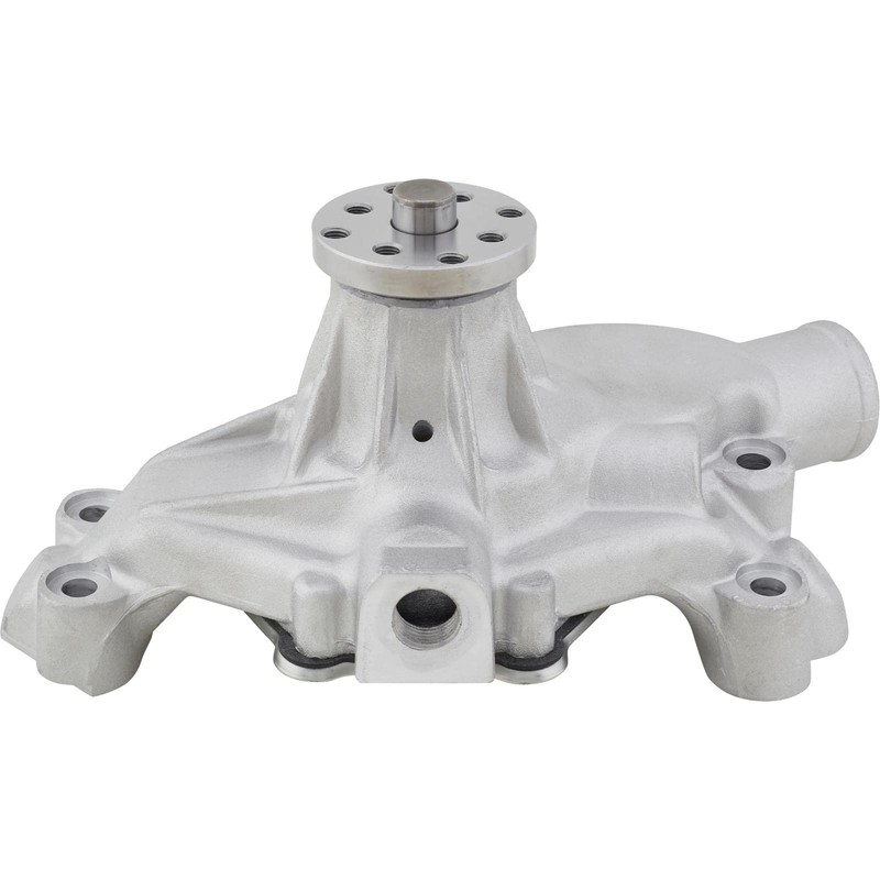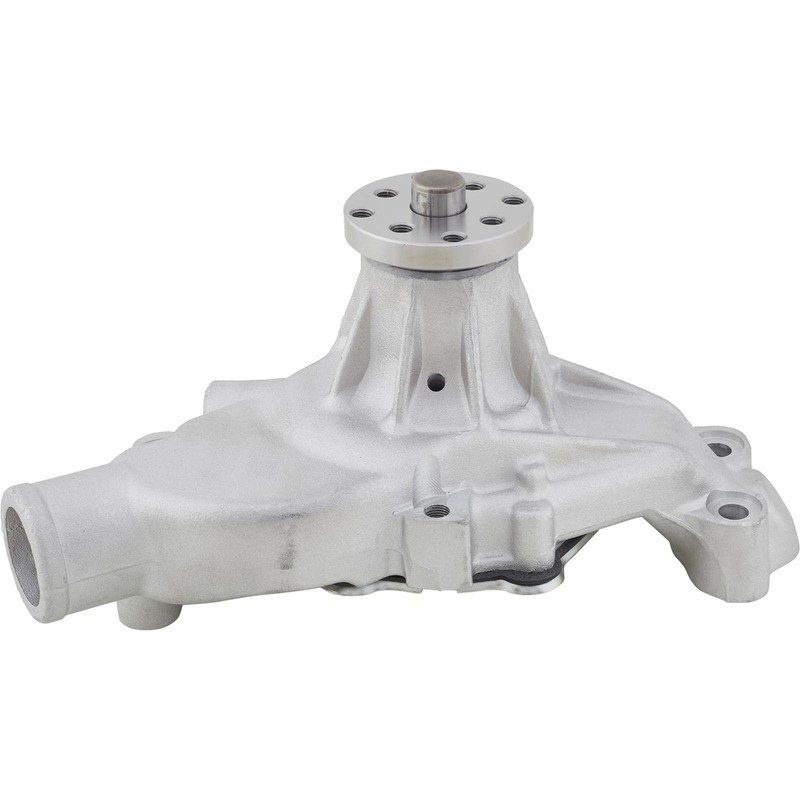 - This heavy duty aluminum water pump fits small block Compatible with Chevy engines and is short water pump length of 5-5/8"