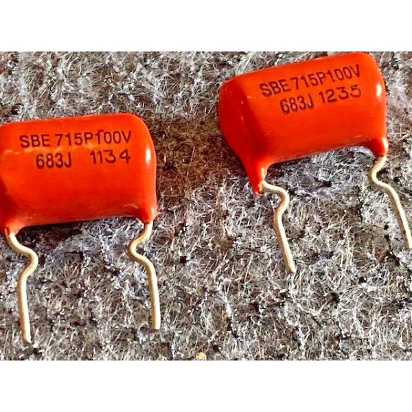 SBE / CDE 25pc .068uF 100V 5% Polypropylene Orange Drop Capacitors  715P68391J