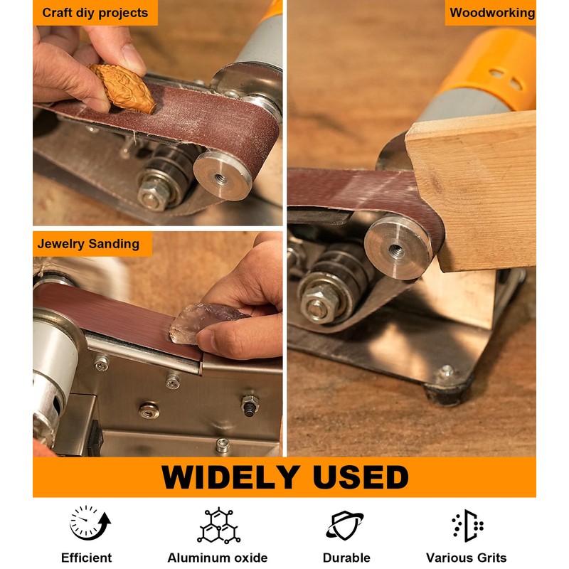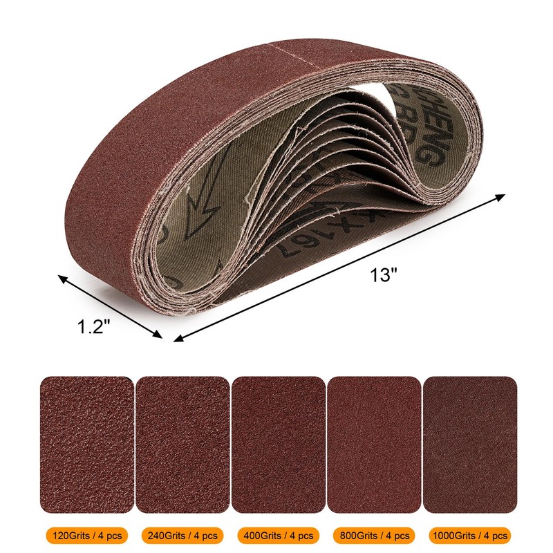 • Including common grits for knife sharpening: 120/240/400/800/1000, 4 pieces of each grit, total 20 pieces of 1.2 x 13 inches aluminum oxide sanding belts to meet your daily knife sharpening needs.