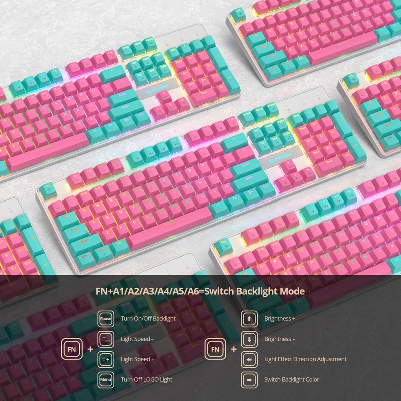 - 【Full Size Keyboard with Number Pad】Maximize productivity with a full size keyboard layout. This pink mechanical keyboard 104 key includes a convenient number pad, Suitable for data entry and extended gaming sessions