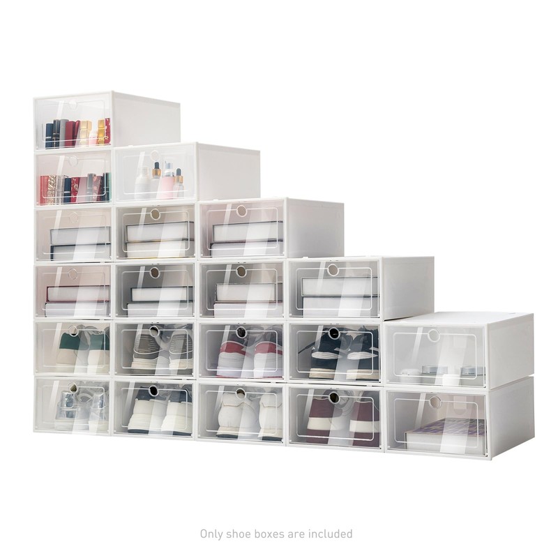 DIY Placement: These shoe boxes can be freely overlapped up and down and side to side according to your furniture arrangement and preference for space-saving and convenient storage.